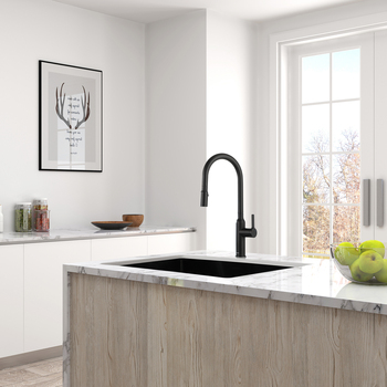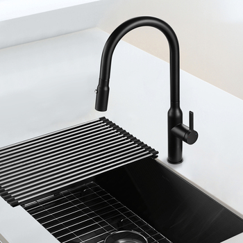 Venta caliente cascada fregadero de cocina Nano negro 304 Acero inoxidable hecho a mano fregadero de cocina con cascada extraíble grifo de cocina